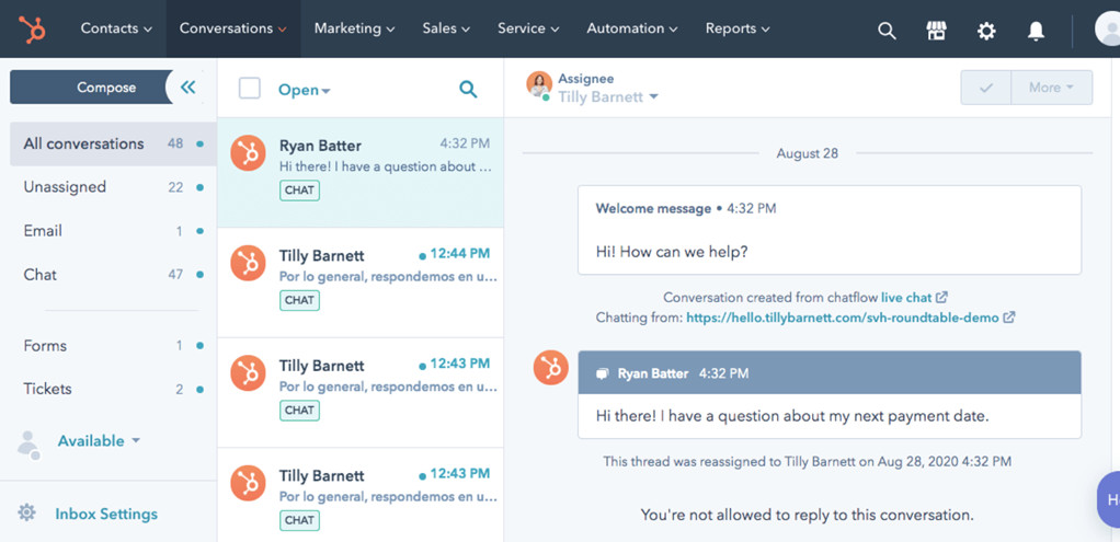改善协作: HubSpot 服务中心允许团队无缝协作,改善沟通和效率。